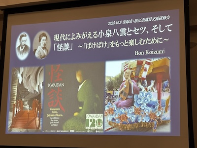 演題: 現代によみがえる小泉八雲とセツ、そして「怪談」 「ばけばけ」をもっと楽しむために 講師: 小泉凡さん(小泉八雲記念館館長)